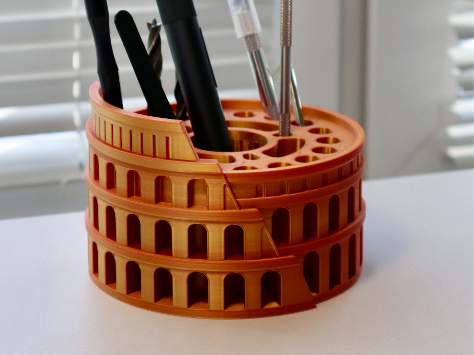 რომის კოლიზეუმის არქიტექტურით შთაგონებული, ეს დიდი ზომის, მრავალფუნქციური სანივთე შექმნილია, რომ დაატიოს ყველა თქვენი მნიშვნელოვანი ინსტრუმენტი - კალმები, ფუნჯები, სახაზავები და სხვა აქსესუარები.